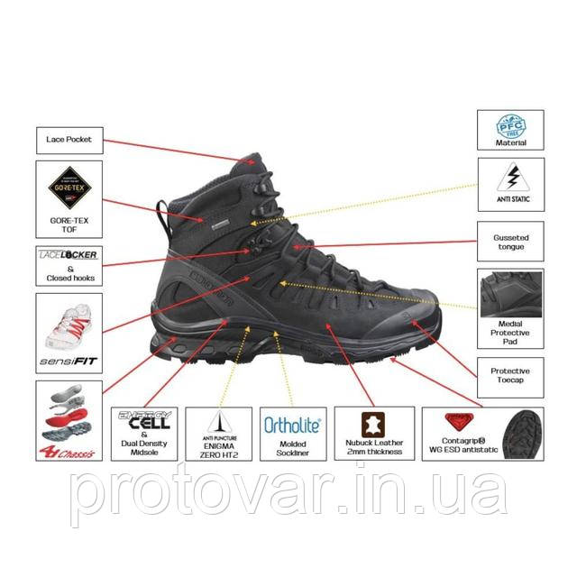 Черевики Salomon Quest 4D MID GTX Forces 2 EN — Black, чоловічі тактичні берці соломон квест гтх на мембрані Gore-Tex